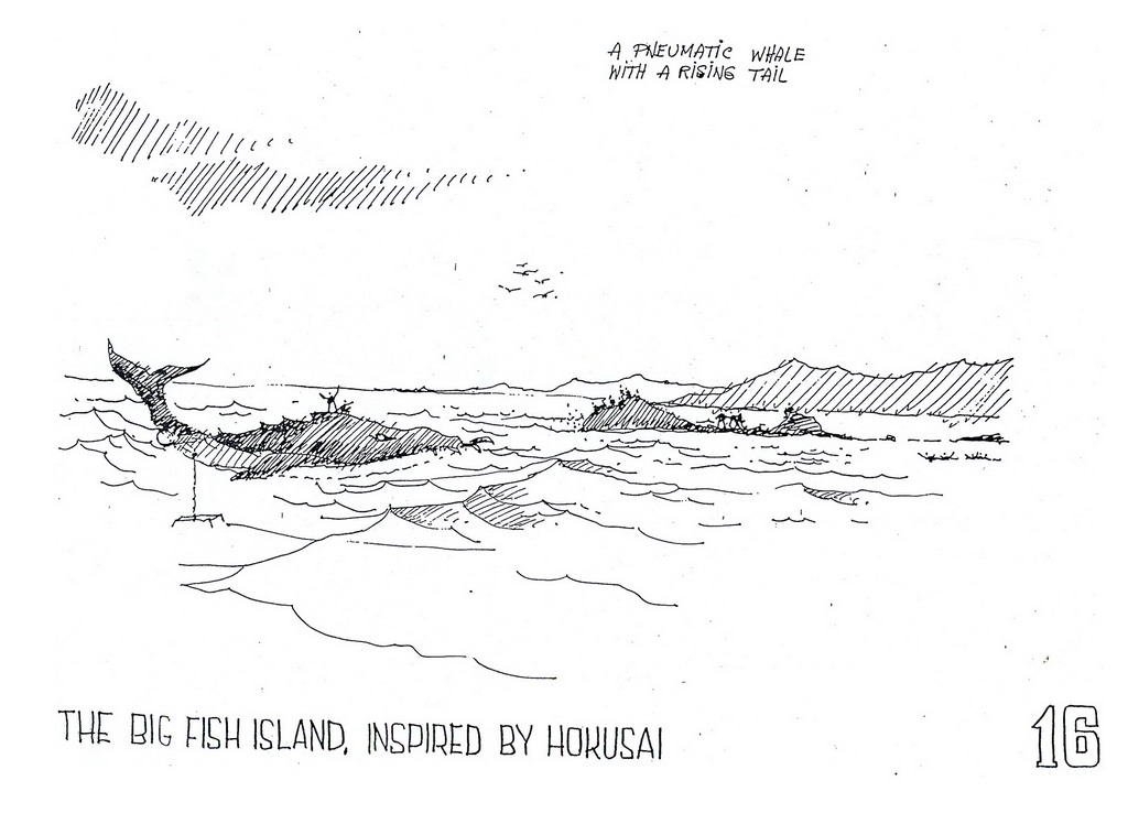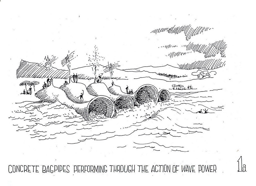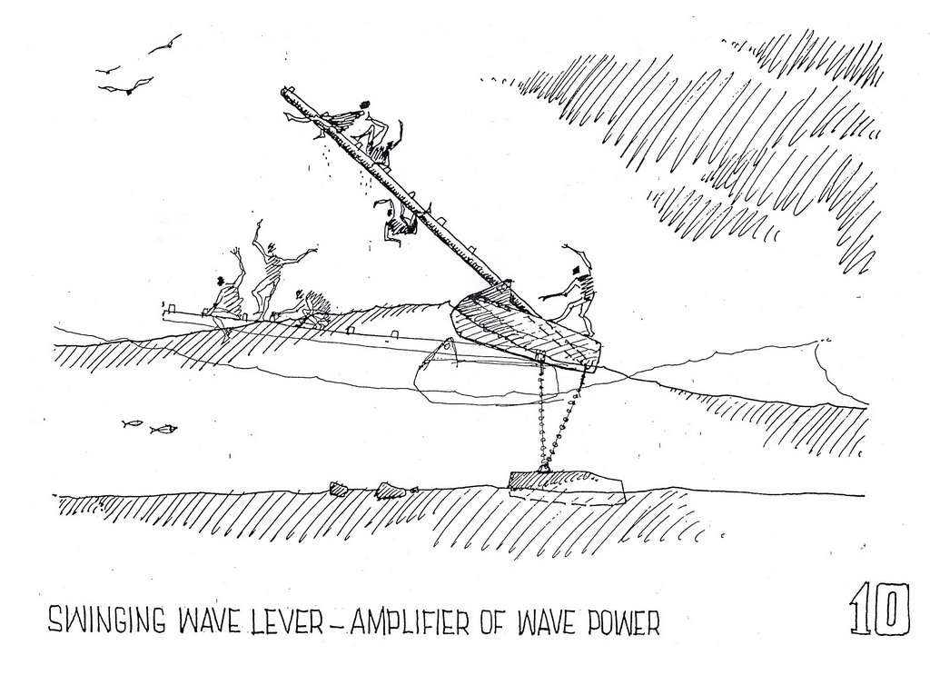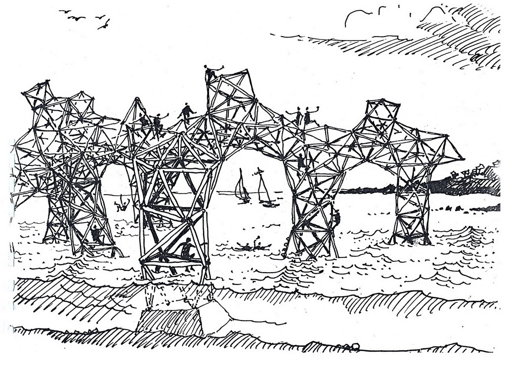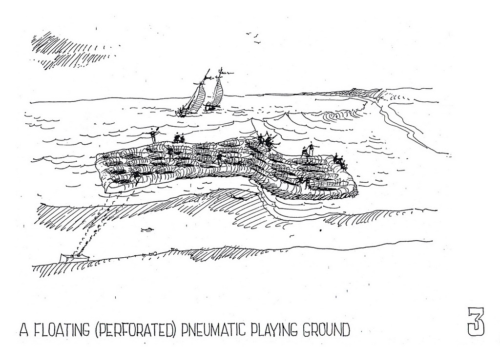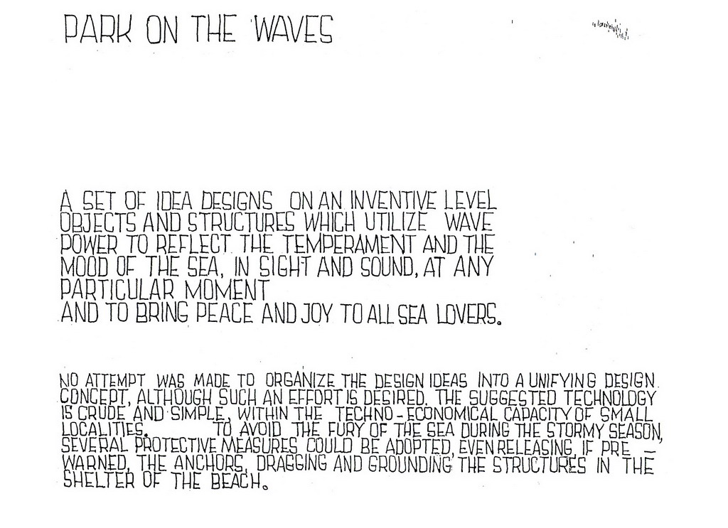 The author’s contribution represented; “A ‘park on the waves’ consisting of recreational floating mobile facilities activated by the wave power”.